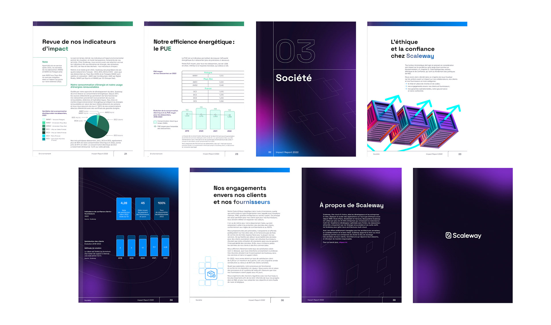 En 2023, Scaleway a changé son identité visuelle pour renforcer sa présence et sa reconnaissance. En parallèle, l’entreprise devait publier son Impact Report, un document institutionnel et réglementaire de 39 pages, qui devait refléter la nouvelle image de l’entreprise.